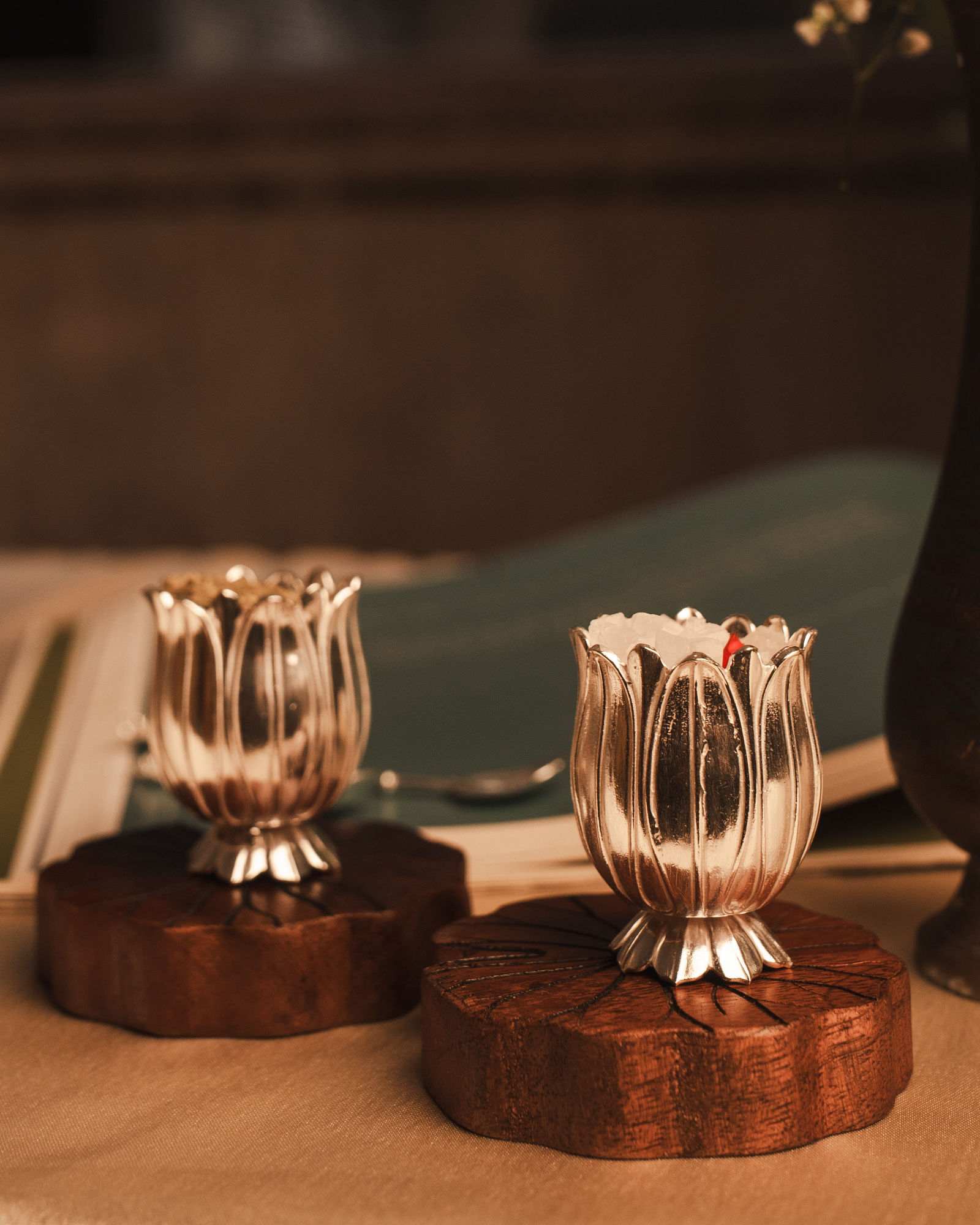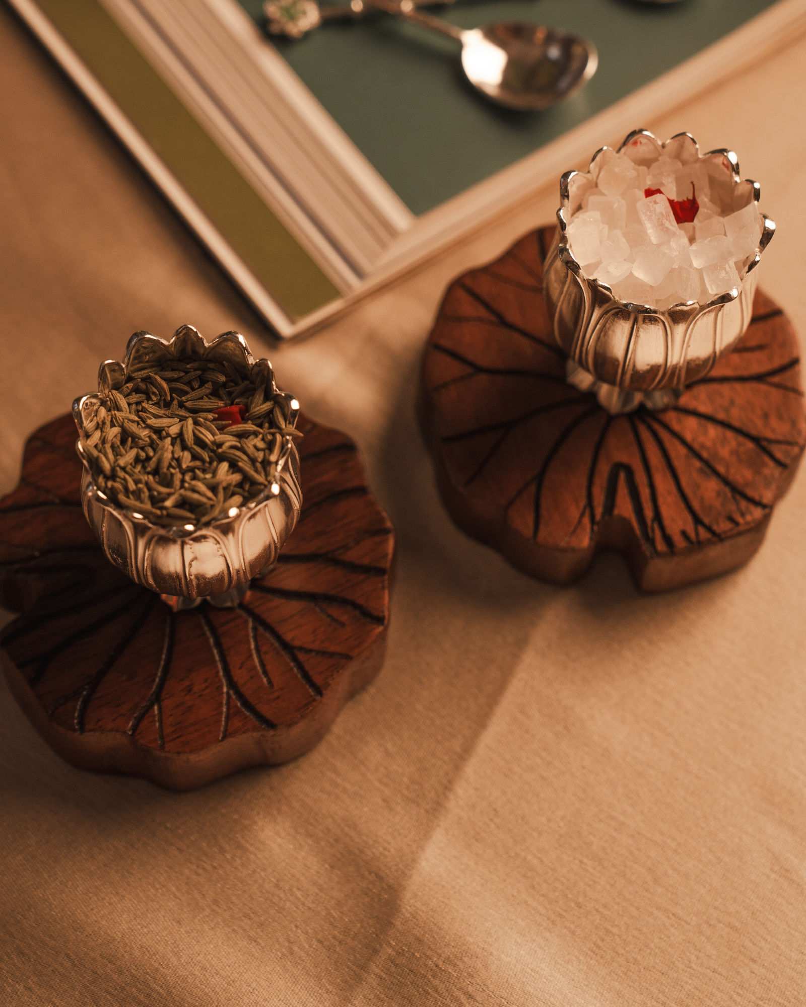 A beautifully crafted silver serving set designed for saunf and mishri, complete with a matching spoon for ease of use. The intricate craftsmanship highlights timeless elegance, while the polished silver finish adds a touch of sophistication to any setting. Perfect for dining tables, pooja rituals, or festive gatherings, this piece blends tradition with utility. The accompanying spoon ensures convenient serving, making it both a functional and graceful addition to your silverware collection or a thoughtful gift for special occasions.